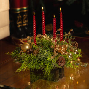 Anturios tornasolados, claveles importados pintados, follaje y una maceta.