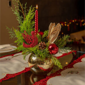 Anturios tornasolados, claveles importados pintados, follaje y una maceta.
