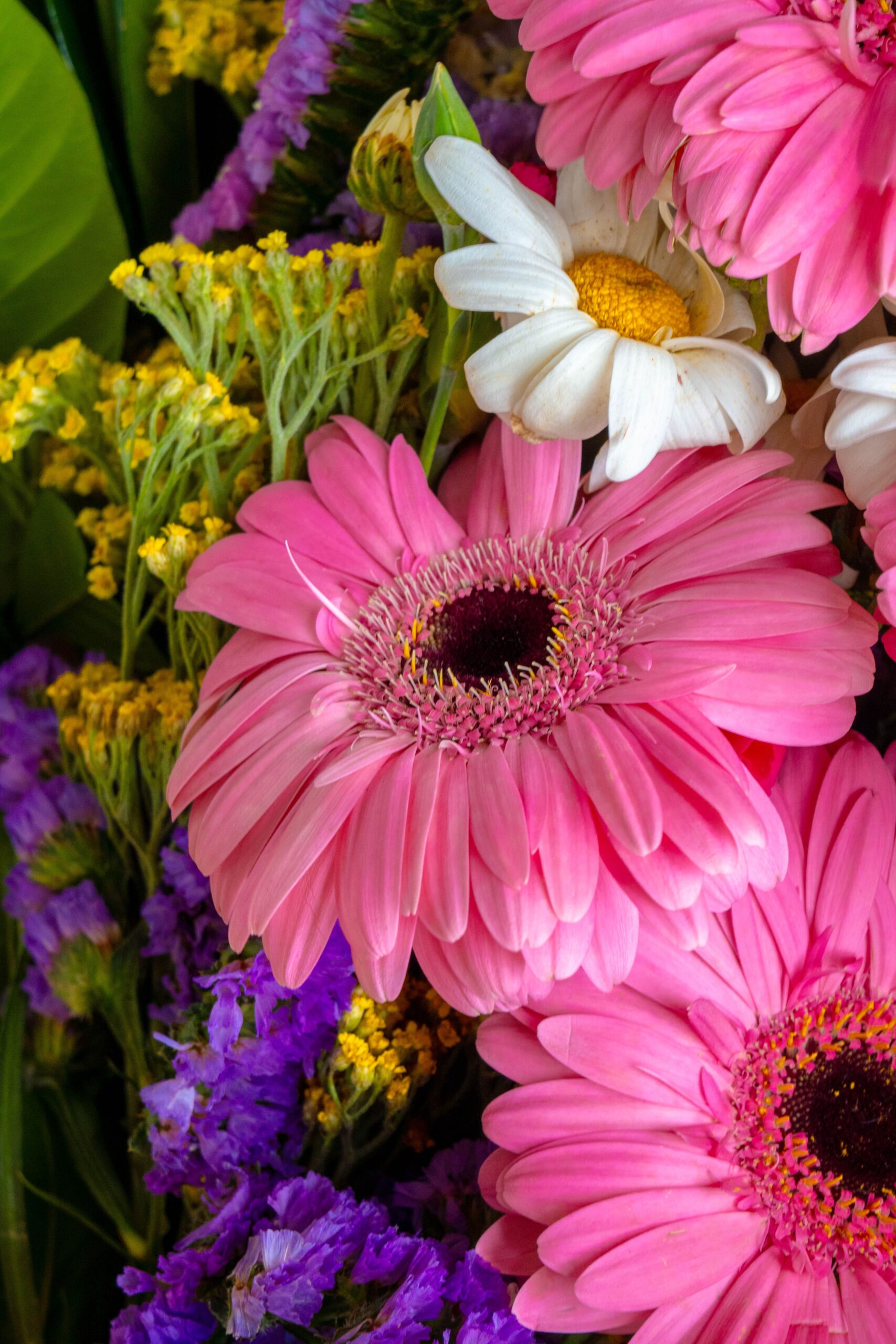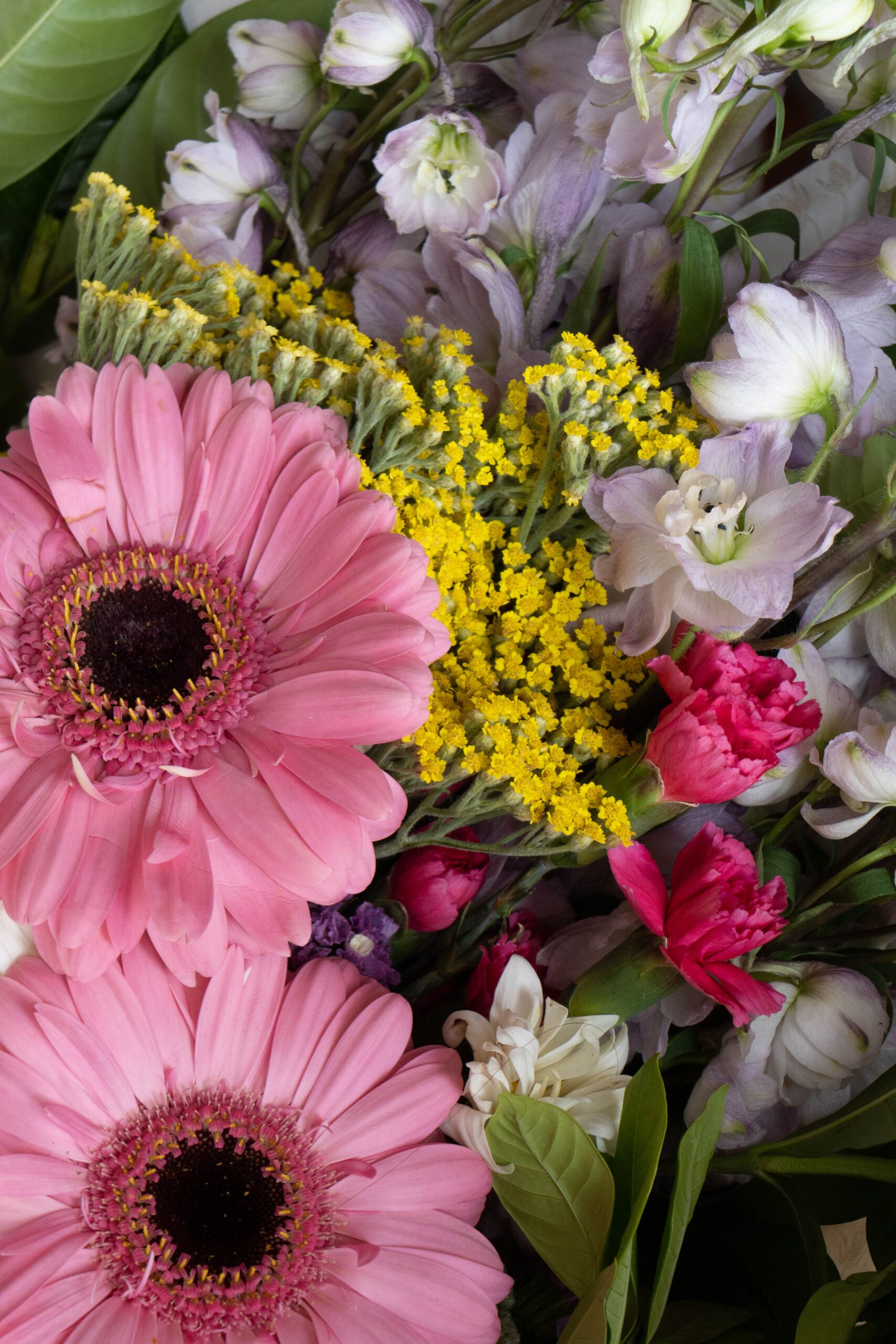 Gerberas, delfinio flores de campo
